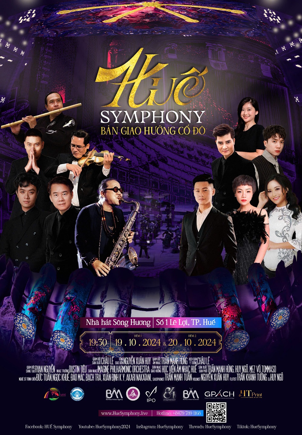 HUẾ SYMPHONY | BẢN GIAO HƯỞNG HUẾ còn là nơi quy tụ những cái tên hàng đầu, hứa hẹn mang đến một đêm nhạc thực sự chất lượng và đẳng cấp với Tổng Đạo diễn Nguyễn Xuân Huy, Giám đốc sản xuất Châu LÊ, Saxophonist Trần Mạnh Tuấn, Nghệ sĩ sáo trúc Trần Khánh Tường, Ca sĩ Đức Tuấn, Ngọc Khuê, Đào Mác, Bạch Trà, Xuân Định K.Y và DJ Huy Ngô...