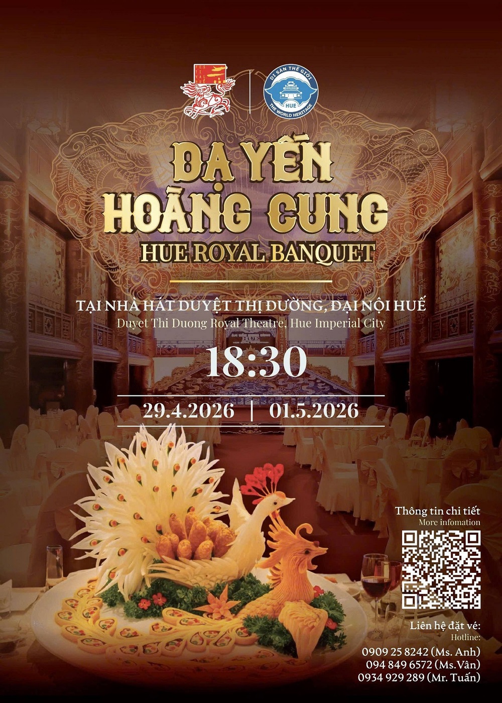 Hãy đến và cảm nhận “Dạ yến Hoàng cung”, nơi không chỉ mang đến một bữa tiệc tinh tế mà còn mở ra hành trình khám phá văn hóa cung đình, để lại những dư vị khó quên trong lòng mỗi du khách.