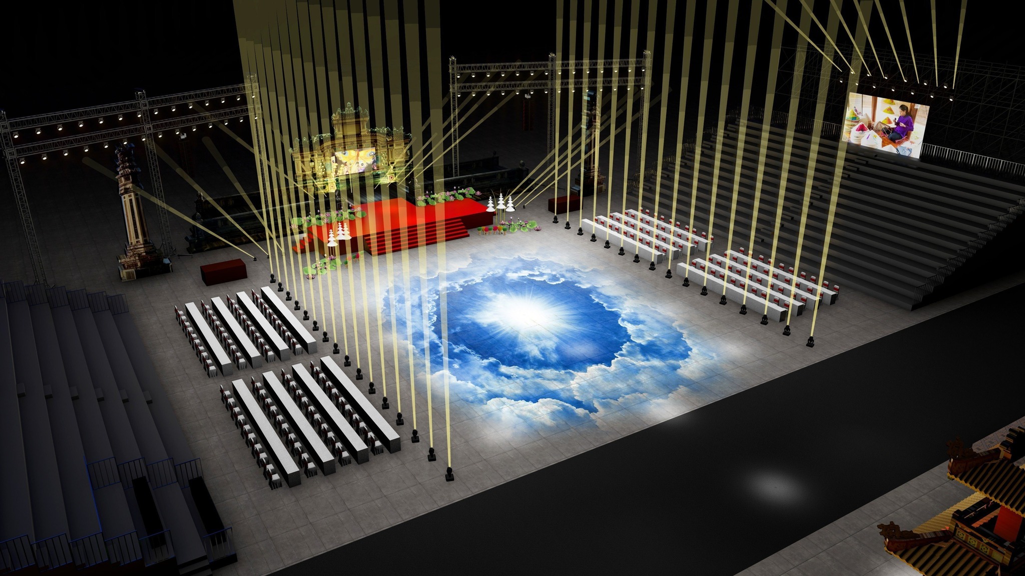 The special feature of this year's opening stage will be different from any other event that has taken place at Quoc Hoc Stele or Quoc Hoc school gate, that is, the stage stretches from Quoc Hoc Stele to the school gate and is completely open, using the existing scene, without installing additional components that affect the magnificent beauty of the two historic buildings of Hue. Spectators sit on two stands, admire the show from above, like a stadium stand, watch the performances on stage with graphic images projected throughout the square, and look through the live streams on your phone or LED screen. This is a hybrid viewing experience, both offline and online.