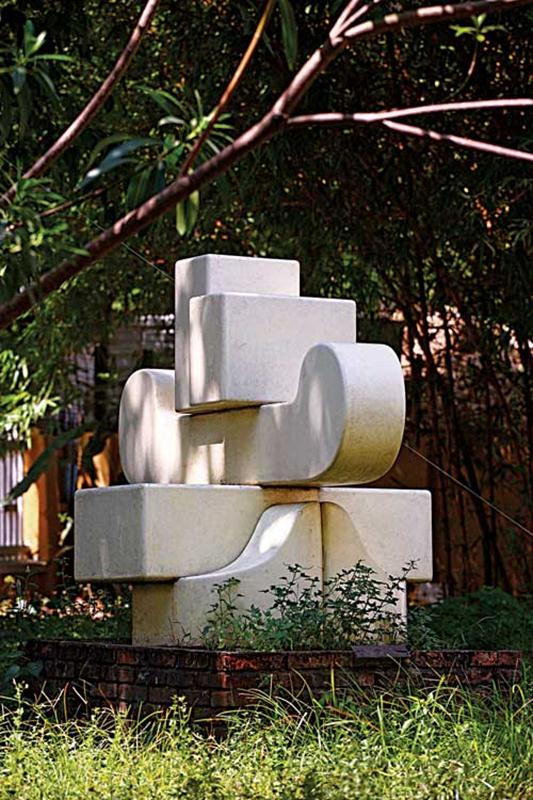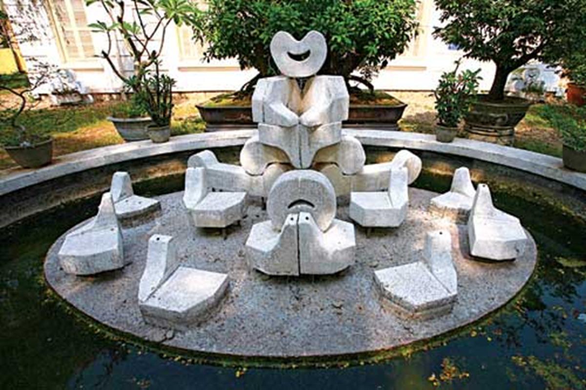 Tác phẩm “Hân hoan” (chất liệu xi măng), được đặt trước cửa trong khuôn viên nhà trưng bày
