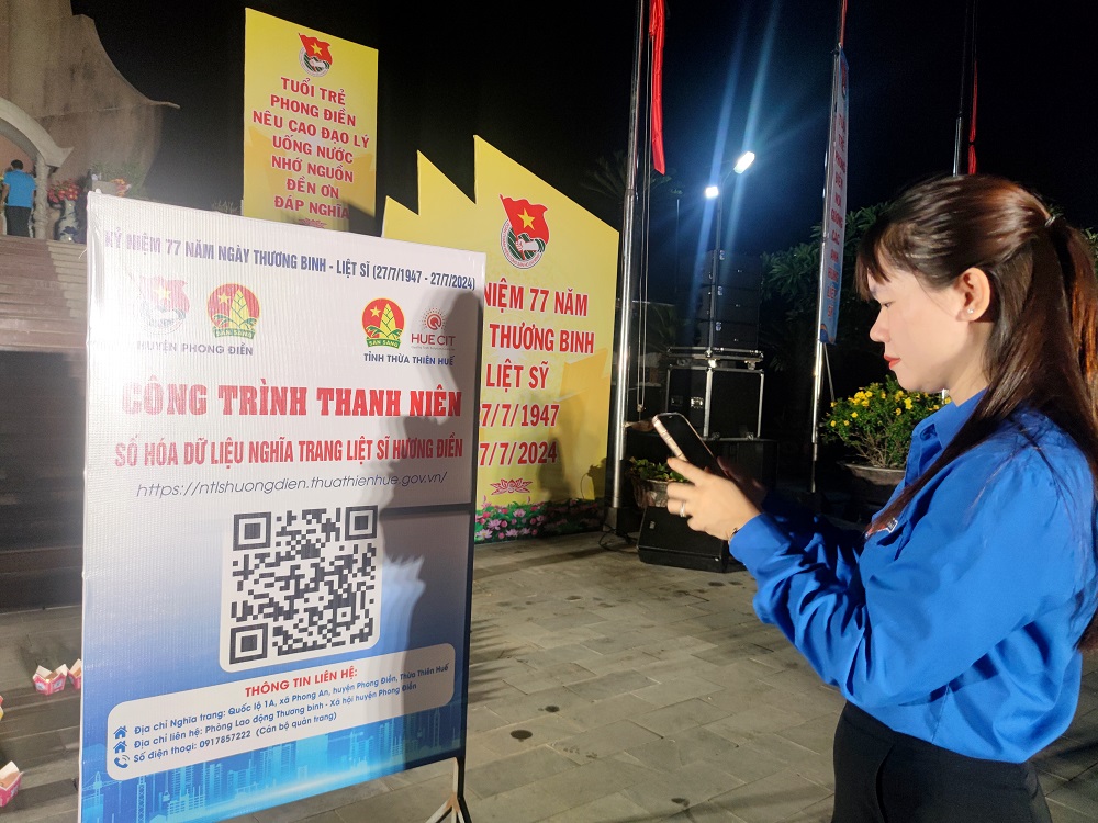 Truy cập thông tin số hóa nghĩa trang liệt sĩ Hương Điền từ mã QR code tại chương trình