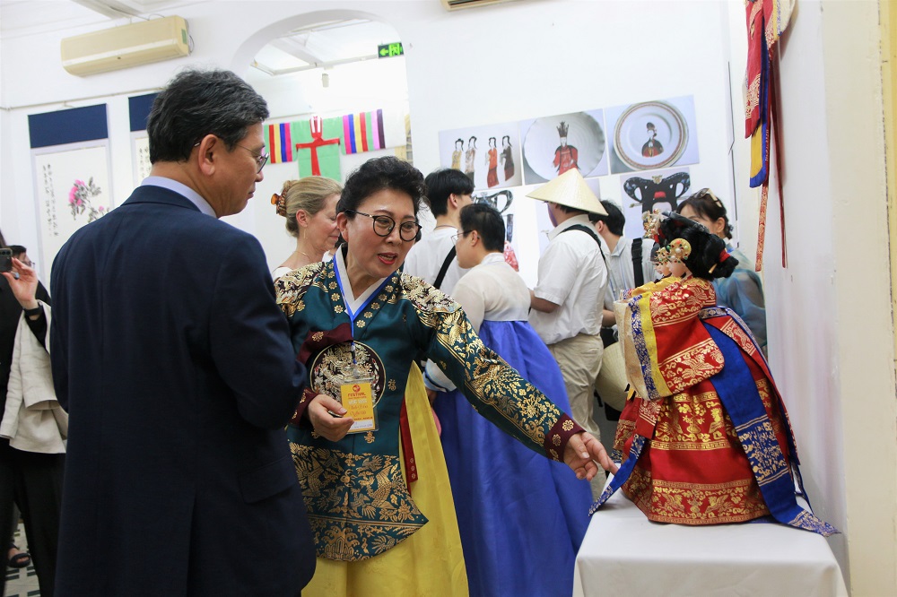 Không gian trưng bày với các sản phẩm đặc trưng đến từ các thành phố của Hàn Quốc, Nhật Bản được giới thiệu tại Festival nghề truyền thống Huế 2023