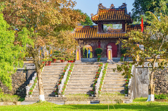 Mùa xuân về mang theo không khí trong lành, nhẹ nhàng chạm vào từng tán cây, ngọn cỏ, khiến cảnh sắc cố đô Huế càng thêm quyến rũ. Và giữa thiên nhiên thơ mộng ấy, Thiên Thọ Lăng (Lăng Vua Gia Long) hiện lên như một bức tranh sơn thủy hữu tình, nơi kiến trúc và thiên nhiên hòa quyện, tạo nên một không gian thanh tịnh, trầm mặc mà vẫn đầy sức sống.