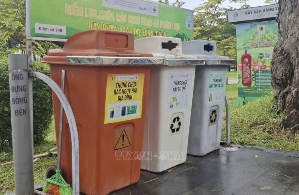 Các điểm phân loại rác được bố trí tại các khu dân cư, công viên. Ảnh: Văn Dũng-TTXVN