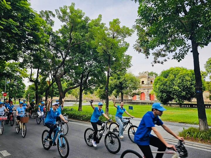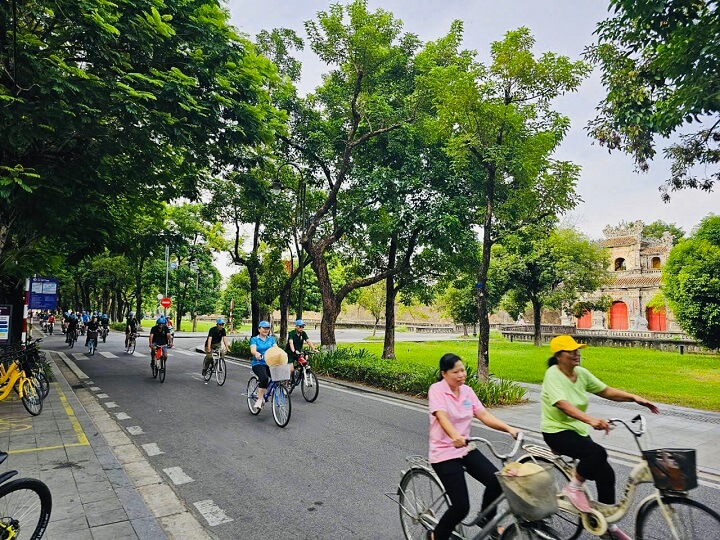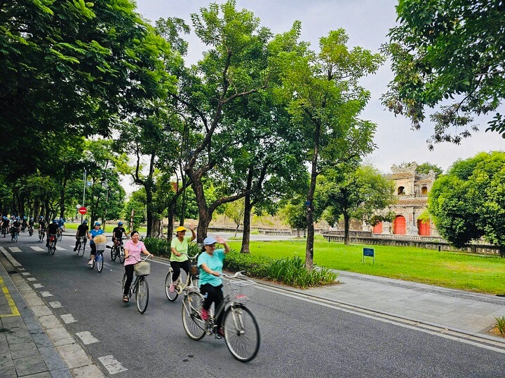 Hình thức đạp xe là tổ chức đoàn xe đạp đi trên các tuyến đường quanh Đại Nội Huế nhằm cổ động cho hoạt động du lịch, quảng bá điểm đến gắn với gìn giữ môi trường sống.