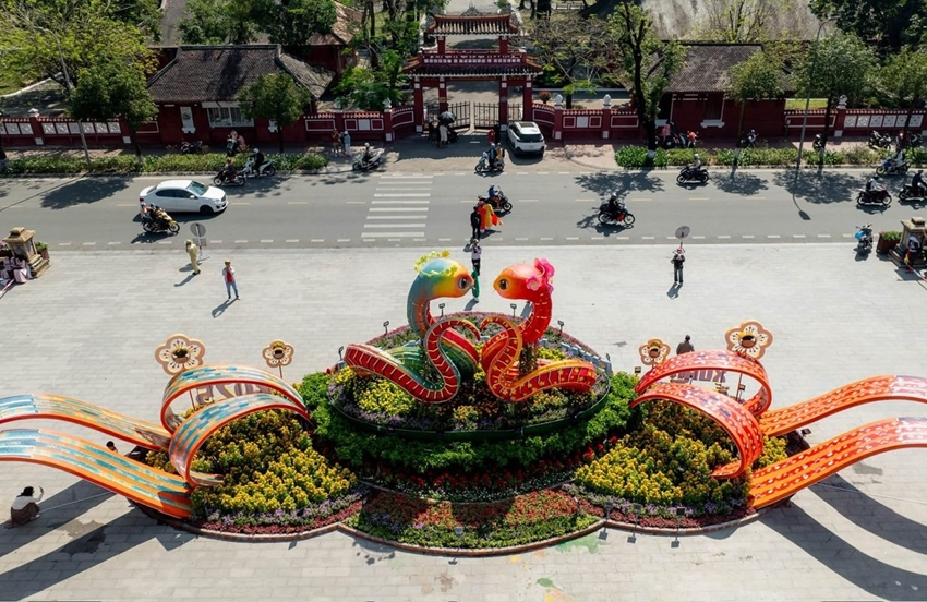 Trên không gian thơ mộng bên bờ sông Hương, biểu tượng linh vật năm Ất Tỵ được đặt ở sân bia Quốc Học đã kịp để lại một nét chấm phá, một dấu ấn đẹp, truyền đi cảm hứng, truyền đi thông điệp về sự sáng tạo trên nền tảng di sản, để di sản, vốn là trầm tích, đã hòa quyện vào hơi thở cuộc sống.
