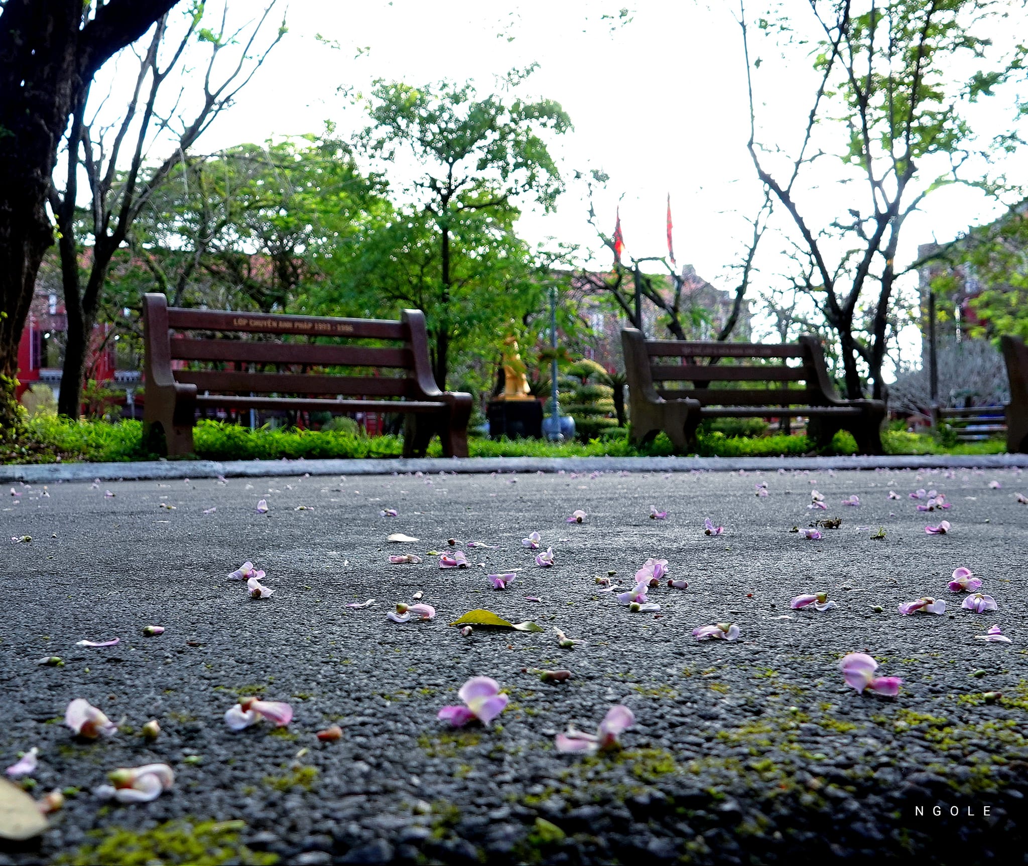 Chỉ cần những cơn gió khẽ lay, sân trường bỗng như được phủ một tấm thảm màu hồng mơ màng, tạo nên bức tranh thiên nhiên tuyệt vời. Vì thế mà các thế hệ học sinh của trường thân quen gọi đó là "mùa mây hồng".