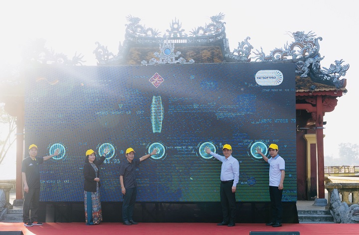 Lãnh đạo Tỉnh, Thành phố và Công ty Vietsoftpro thực hiện nghi thức tái khởi động tại buổi lễ