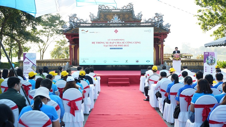 Hệ thống Xe đạp chia sẻ công cộng tại Huế được triển khai dựa trên nội dung biên bản ghi nhớ giữa UBND thành phố Huế với Tổ chức Hợp tác Phát triển Đức (GIZ) và Công ty Cổ phần Vietsoftpro nhằm hướng đến phát triển giao thông đô thị bền vững và thành phố thông minh; Lễ khai trương thí điểm đã được tổ chức vào ngày 05/6/2022 với 7 trạm xe, hơn 80 xe đạp. Dự án được chia thành 3 giai đoạn, trong đó giai đoạn 1 (từ tháng 6 đến tháng 12/2022) đã thực hiện thí điểm tuyến xe đạp chia sẻ công cộng thông minh trong Thành phố với 7 trạm đặt hai bên bờ sông Hương và trong khu vực Đại Nội.