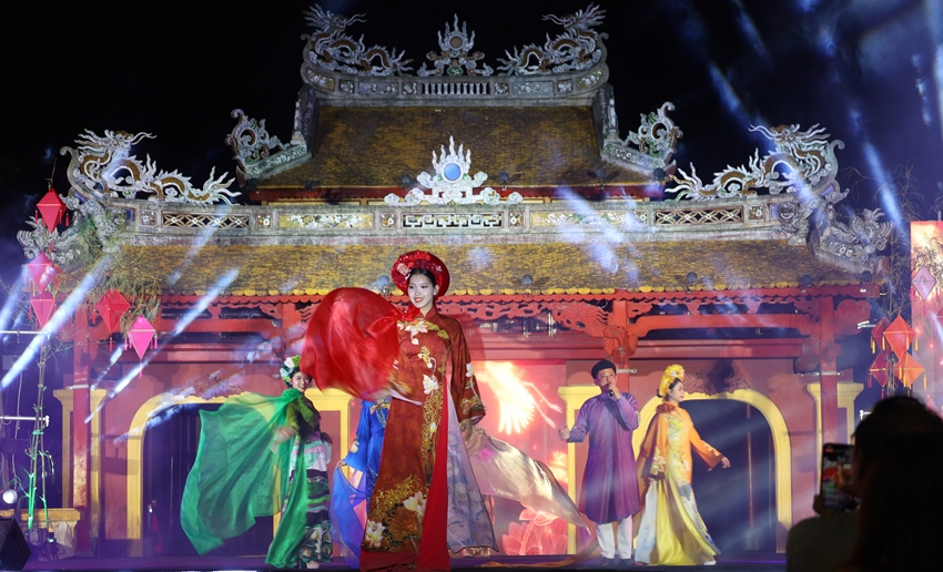 *Trước đó, chiều cùng ngày triển lãm ảnh với chủ đề “Áo dài đương đại – Ba miền hội tụ” đã khai mạc tại không gian đình Kim Long (phường Kim Long, TP. Huế). Triển lãm trưng bày 30 tác phẩm nhiếp ảnh của 15 tác giả về hình ảnh các bộ sưu tập áo dài của các nhà thiết kế đến từ ba miền đất nước Việt Nam.