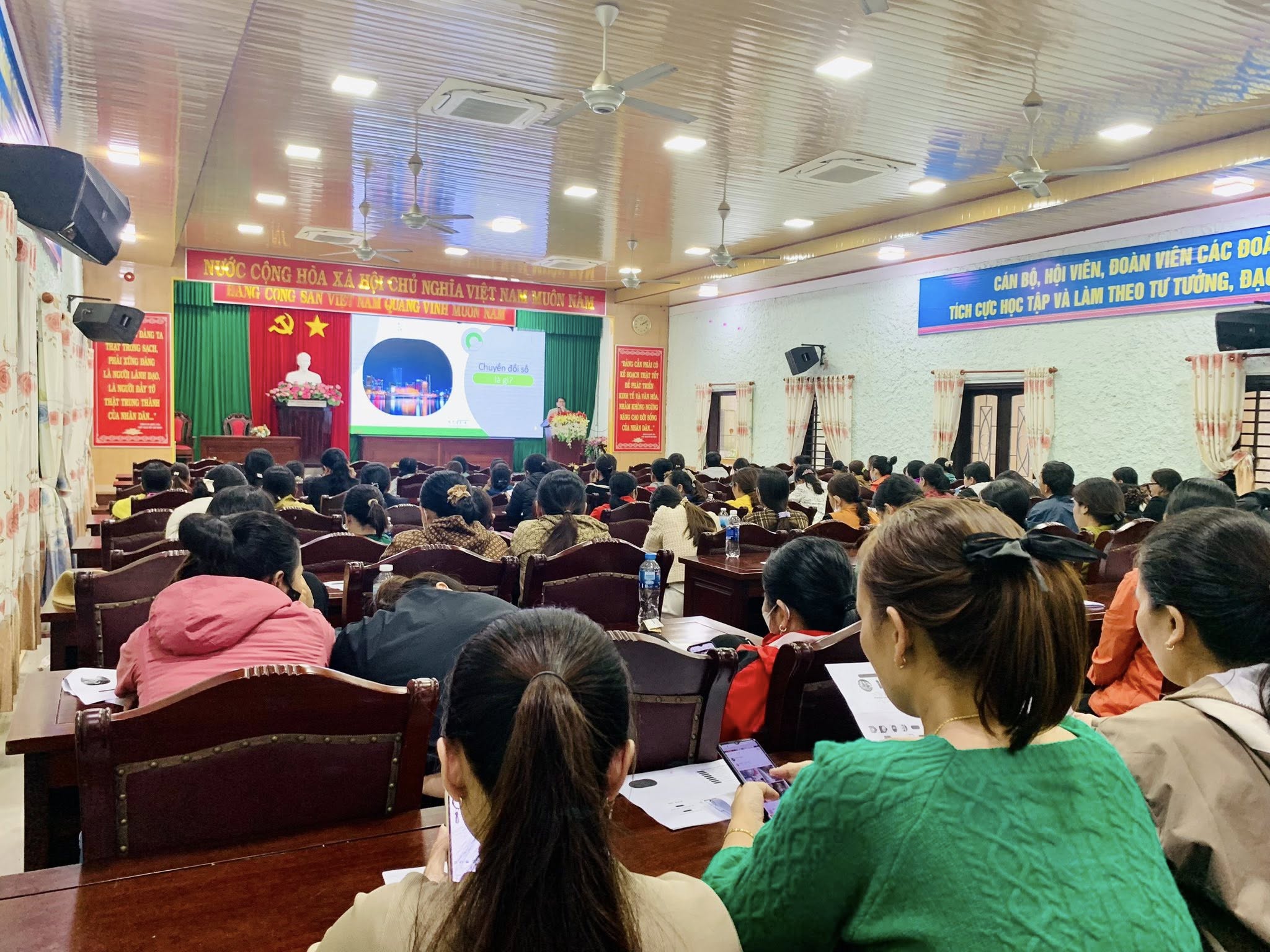 Các lớp học diễn ra sôi nổi, thu hút sự tham gia tích cực của người dân. Học viên chăm chú tiếp thu kiến thức, chủ động trao đổi và thực hành trong suốt quá trình đào tạo. Đây là tín hiệu cho thấy nhu cầu học tập và ứng dụng công nghệ số trong đời sống ngày càng tăng, đồng thời khẳng định hiệu quả thiết thực của chương trình tại địa phương.