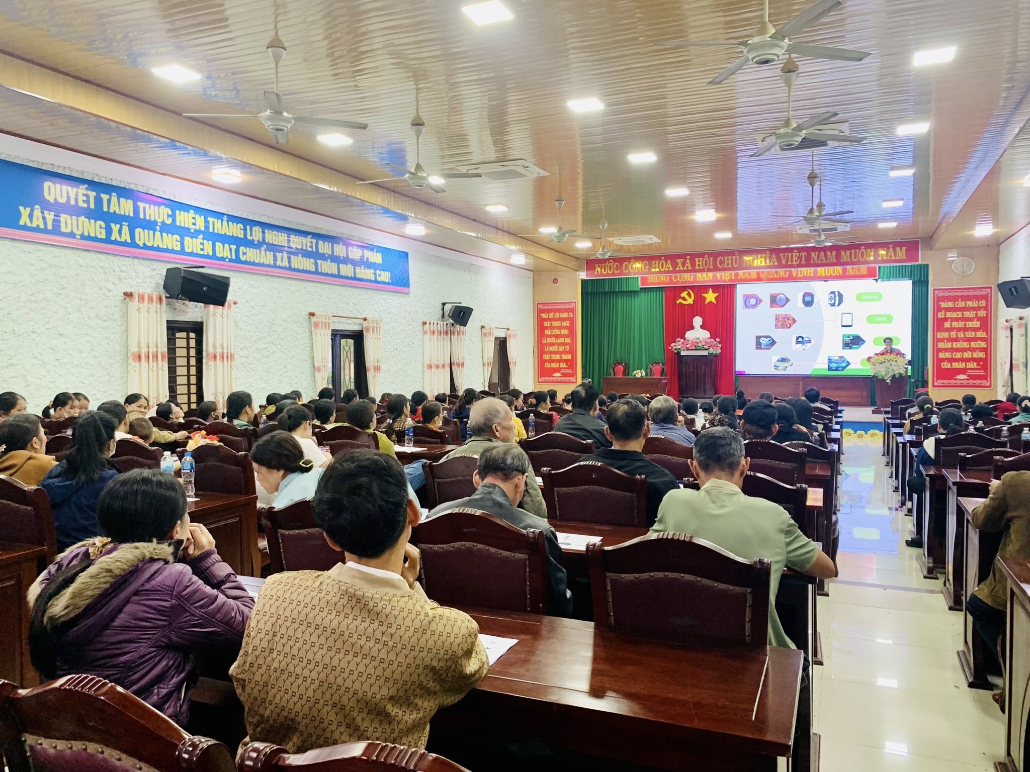 Thực hiện nhiệm vụ đào tạo và bồi dưỡng nâng cao năng lực công nghệ thông tin, kỹ năng số cho cộng đồng, từ ngày 08 đến 11/12/2025, Trung tâm Công nghệ thông tin thành phố Huế (HueCIT) phối hợp với UBND xã Quảng Điền tổ chức bốn lớp đào tạo dành cho người dân, Tổ Công nghệ số cộng đồng và cán bộ các thôn, đơn vị trên địa bàn. Mỗi lớp có quy mô 100 học viên, đảm bảo sự tham gia rộng rãi và đồng đều giữa các nhóm đối tượng.