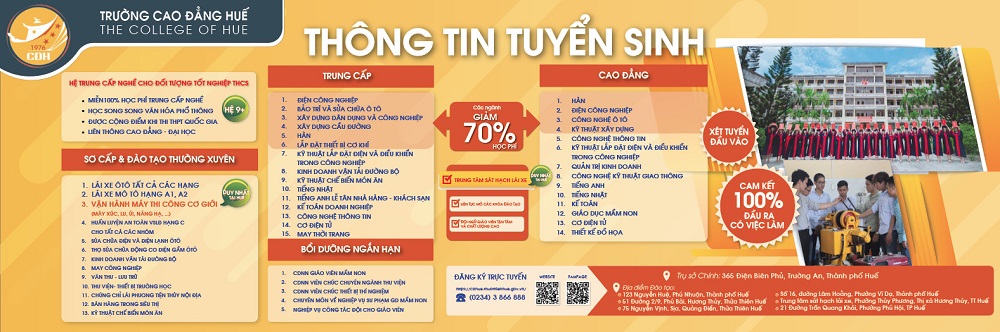 TRƯỜNG CAO ĐẲNG HUẾ - ĐỊA CHỈ ĐÀO TẠO UY TÍN ĐỒNG HÀNH CÙNG HỌC VIÊN, SINH VIÊN TRONG CHỌN NGHỀ VÀ HỌC NGHỀ!