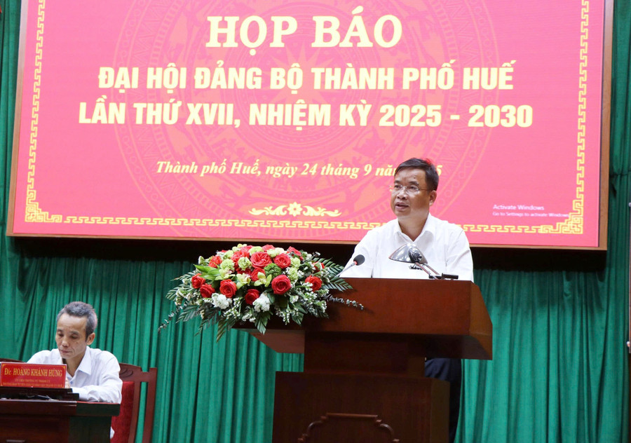Ngày 24/9, Thành ủy Huế tổ chức Họp báo Đại hội Đảng bộ TP Huế lần thứ XVII, nhiệm kỳ 2025 – 2030.