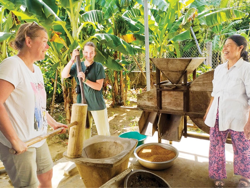 Trải nghiệm câu chuyện về văn hóa lúa nước, đời sống nông thôn ở điểm du lịch Cầu ngói Thanh Toàn. Ảnh: Slow Travel Hue
