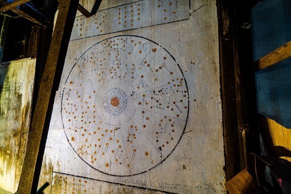 Hình ảnh bản đồ các chòm sao, vì tinh tú còn lưu giữ bên trong di tích Khâm Thiên Giám. Ảnh: TTBTDTCĐ Huế