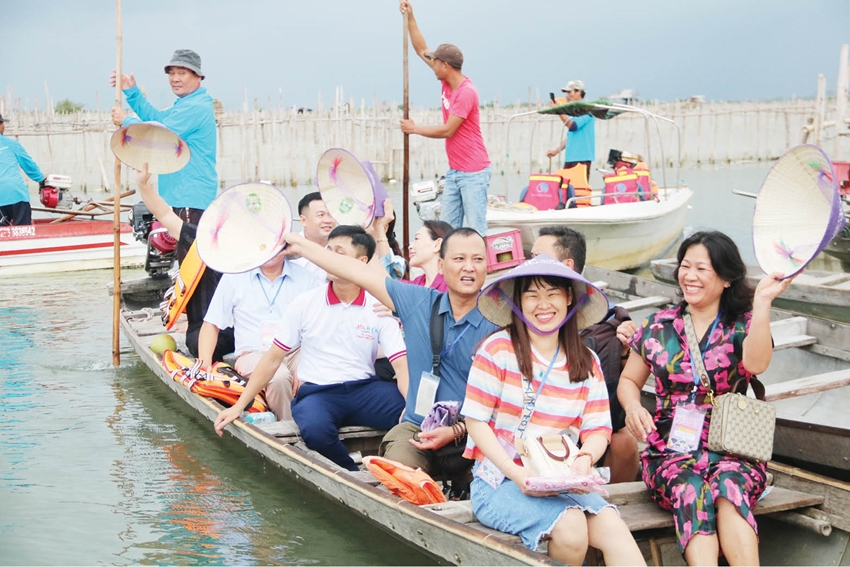 Đại diện các doanh nghiệp lữ hành khảo sát sản phẩm du lịch ở đầm Chuồn