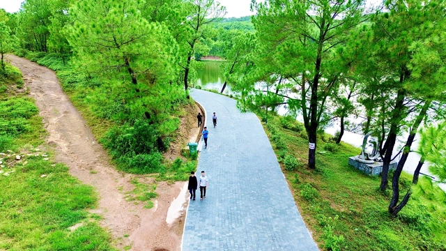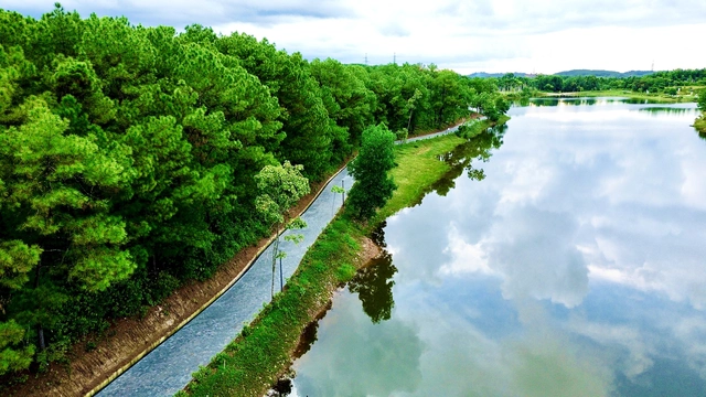 Rất nhiều cây xanh bao quanh khu vực hồ Thủy Tiên tạo nên một không gian vô cùng thoáng mát.