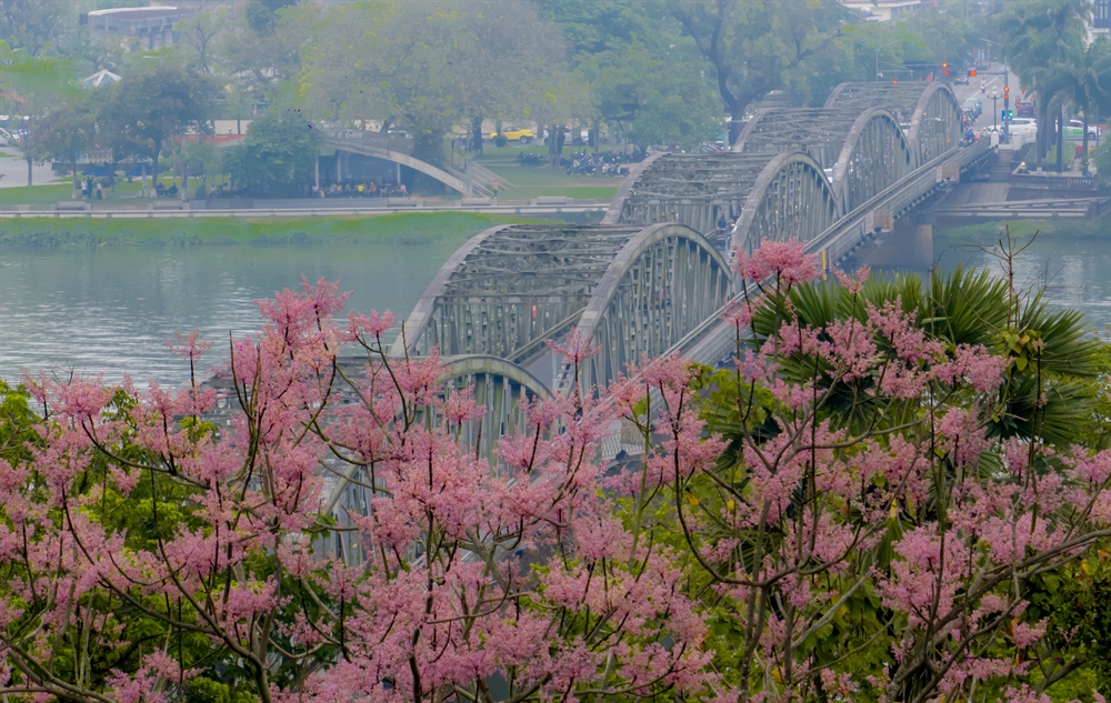 Hoa ngô đồng khoe sắc bên cầu Trường Tiền