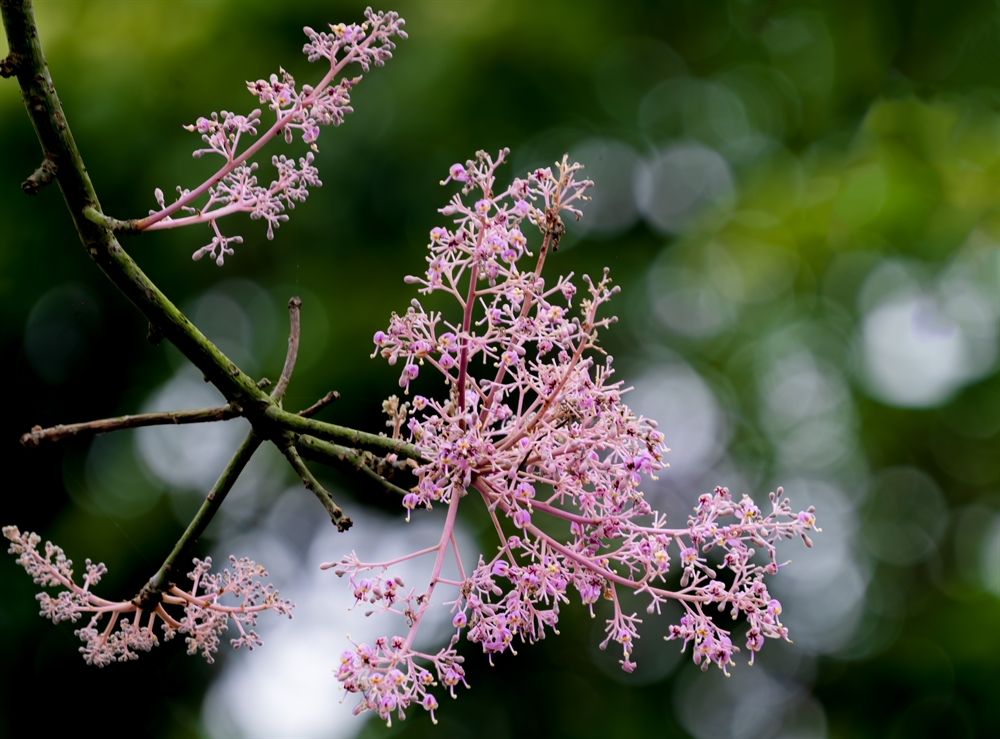 Nhưng có lẽ, ngô đồng đẹp nhất là vào mùa hoa nở, từ tháng Ba đến tháng Năm hằng năm. Khi ấy, cây trút hết lá, để lộ ra những cành khẳng khiu, rồi bất ngờ bung nở thành từng chùm hoa nhỏ li ti. Hoa ngô đồng không lớn, không dày cánh, nhưng lại kết thành từng cụm dày đặc, phủ kín các cành cây. Từ xa nhìn lại, cả một vòm cây như được nhuộm bằng gam màu tím nhạt, rồi dần chuyển sang sắc hoa cà dịu dàng. Màu sắc ấy không chói lóa, mà nhẹ nhàng, thanh thoát, như chính tính cách của con người xứ Huế.