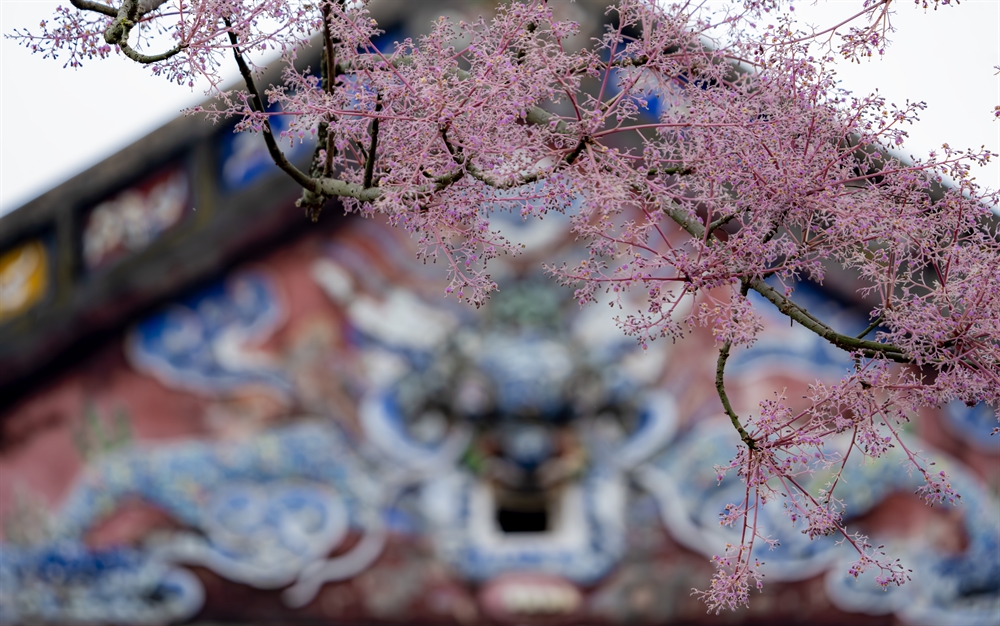 Dưới ánh nắng đầu hè, những chùm hoa ngô đồng như phát sáng, làm bừng lên cả một khoảng không gian cổ kính. Giữa nền tường rêu phong của Đại Nội, sắc tím ấy trở nên nổi bật nhưng không lạc lõng, trái lại còn hòa quyện một cách tinh tế, tạo nên một bức tranh vừa cổ điển vừa nên thơ. Đó là vẻ đẹp không ồn ào, không phô trương, mà sâu lắng, khiến người ta phải dừng lại thật lâu để cảm nhận.