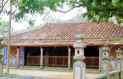 Phần chính điện: Được bài trí với một hệ thống hương án thờ tự ở cả 3 gian. Hương án trước đây được làm bằng gỗ nhưng do bị hư hỏng nên được làm lại bằng bê tông giả gỗ, phía ngoài được quét sơn và trang trí khá tỉ mỉ. Xung quanh hương án được chia làm nhiều ô hộc với những hình vuông và hình chữ nhật. Mỗi ô hộc đều có trang trí cây cối, hoa lá cách điệu. Mặt chính của hương án có trang trí hình “hổ phù”. Phía trên thiết trí các đồ thờ tự như bát nhang, đài trầu nước, đế đèn cầy… Giữa các hương án là các cặp câu đối bằng chữ Hán có nội dung ca ngợi cảnh yên vui, thái bình của một làng quê Việt.