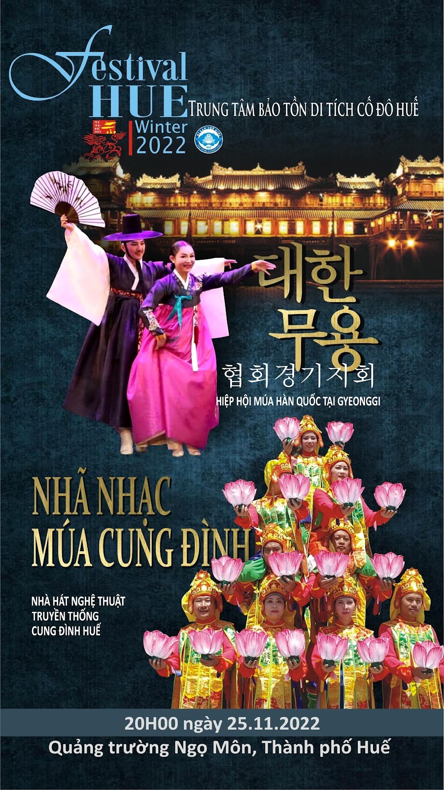 Trong khuôn khổ các hoạt động Festival Huế mùa Đông 2022, Trung tâm Bảo tồn Di tích Cố đô Huế triển khai chương trình phục vụ cộng đồng với tên gọi "VŨ KHÚC GIAO HÒA". Đây là chương trình biểu diễn do Nhà hát Nghệ thuật truyền thống Cung đình Huế phối hợp với Hiệp hội Múa Gyeonggi Hàn Quốc thực hiện tại sân khấu trước Ngọ Môn vào lúc 20h ngày 25/11/2022. “Vũ khúc giao hòa” được xem là một hoạt động nhân kỷ niệm 30 năm (22/12/1992 – 22/12/2022) thiết lập quan hệ Việt Nam - Hàn Quốc.