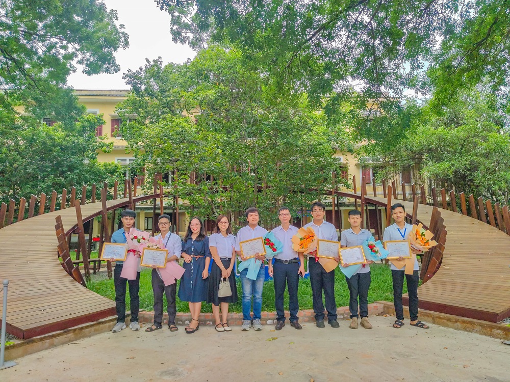 Các thí sinh đạt giải chụp hình lưu niệm tại Trường Đại học Khoa học, Đại học Huế cùng Ban Thư ký sau chương trình