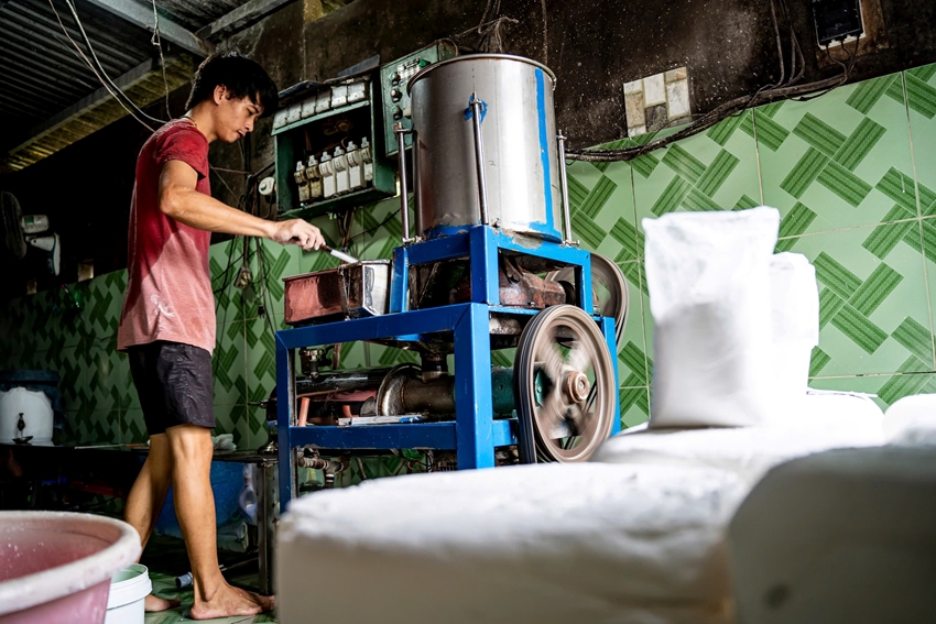 Người dân làng Vân Cù với nghề làm bún nổi tiếng. Ảnh: Đình Hoàng