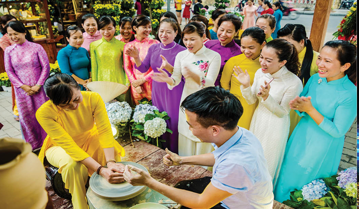 Cùng du khách thao diễn nghề gốm Bát Tràng tại Festival Nghề truyền thống Huế (ảnh: Đăng Tuyên)