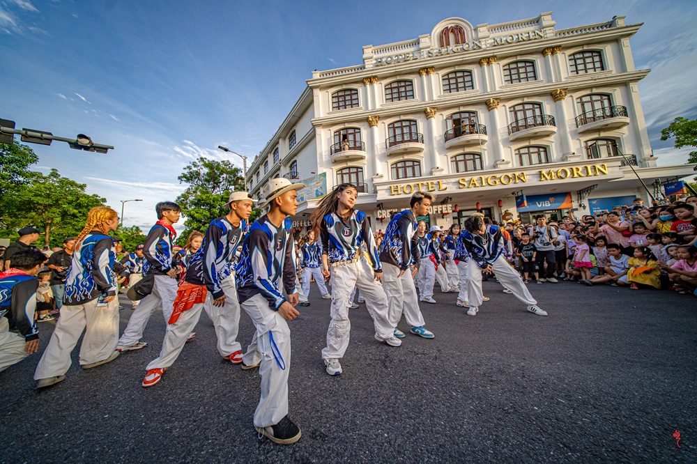 Đáng chú ý, có nhiều đoàn nghệ thuật quốc tế góp mặt tại lễ hội như đoàn nghệ thuật Kobugakudan URAKAJI – Okinawa Nhật Bản (múa trống và sư tử); đoàn trống Hàn Quốc Yanpyeong; nhóm nhảy Hip hop thành phố Cergy (Cộng hòa Pháp), Đoàn cà kheo De Koninklijke Steltenlopers Merchtem (Bỉ)… Bên cạnh đó, lễ hội đường phố năm nay còn giới thiệu và tôn vinh nhiều di sản văn hóa đặc trưng của Cố đô Huế như: ca Huế, mặt nạ tuồng, diều Huế, Huế - kinh đô áo dài... đã đem đến một bữa tiệc sắc màu văn hóa vừa đa dạng vừa giàu bản sắc.