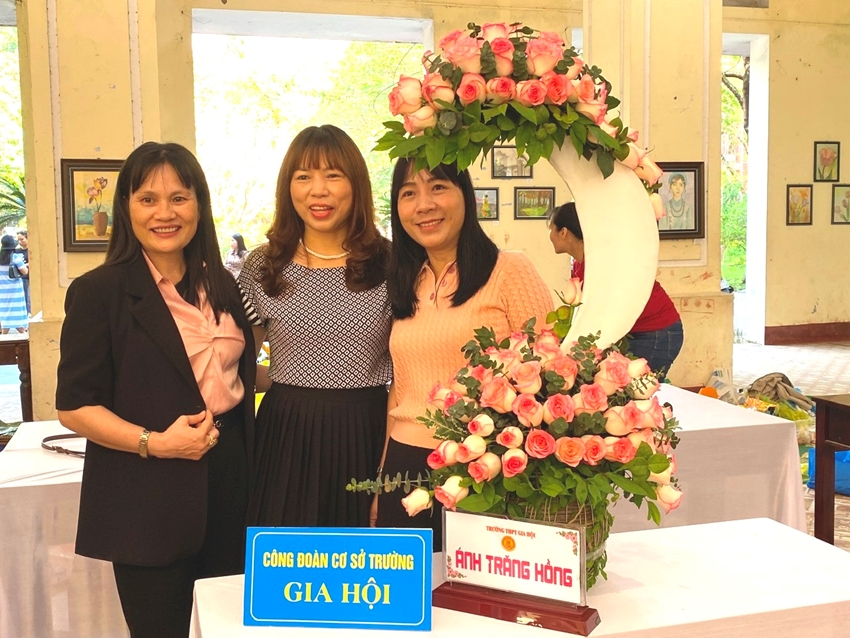 Tác phẩm cắm hoa nghệ thuật "Ánh trăng hồng" của Công đoàn cơ sở Trường THPT Gia Hội