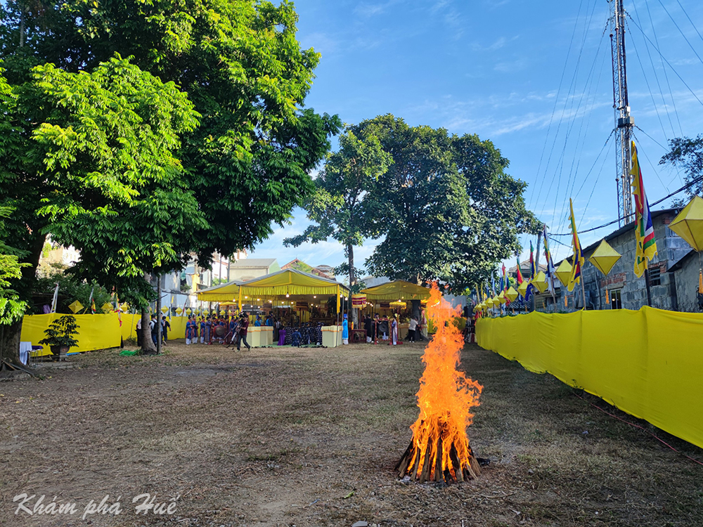 Theo tục lệ của người xưa, một đống lửa lớn được đốt trong khuôn viên đàn tế trước. Người Huế quan niệm, xưa kia nhiều người dân chạy giặc rớt xuống ao, hồ chết nước nên cần lửa để sưởi ấm.