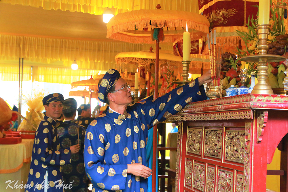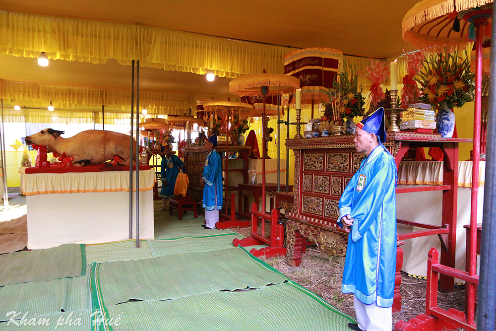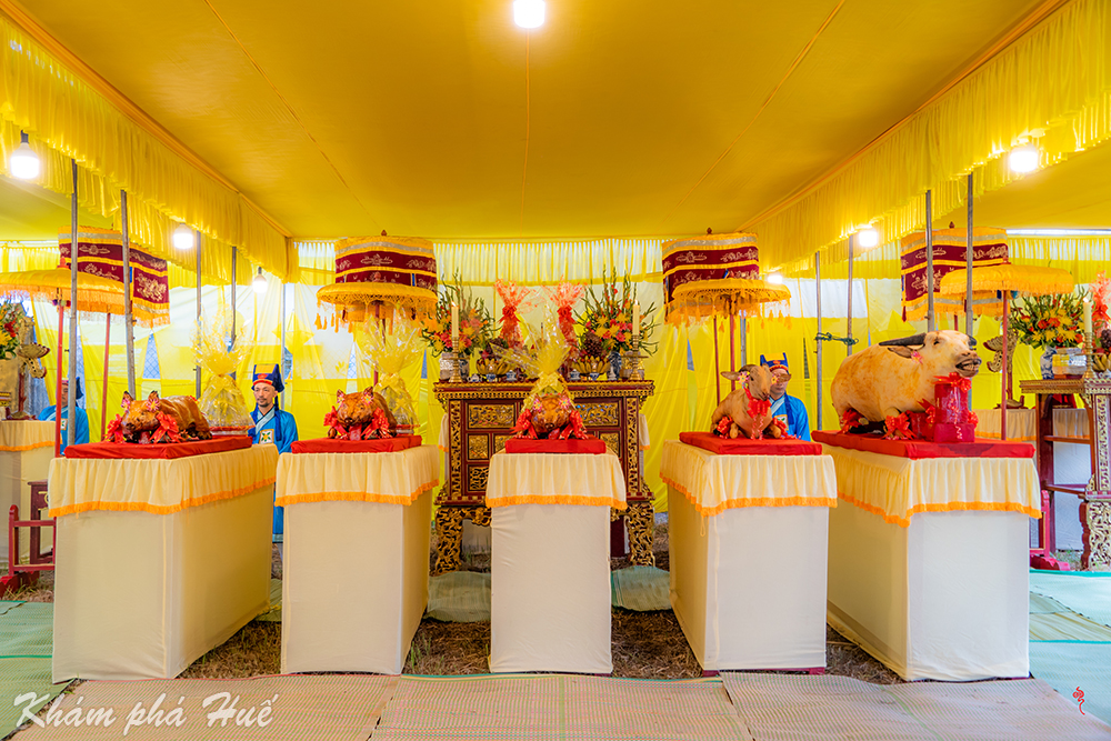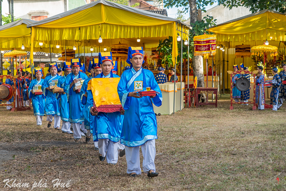 Theo đó, lễ tế được tổ chức với nhiều lễ vật gồm bò, dê, lợn, xôi, thức ăn chín, nước chè, rượu, gạo, vàng bạc, đèn hương… Bài vị của Thành Hoàng (vị thần bảo vệ Kinh Thành) được đặt trên bàn thờ chính, bài vị của quan viên thương vong (các quan văn, võ tử trận) được đặt bàn thờ giữa (trung án), bài vị các lại binh (quan nhỏ và lính tử trận) trên bàn thờ bên trái (tả án), sau cùng là của nam, phụ, lão, ấu đặt bên phải (hữu án).