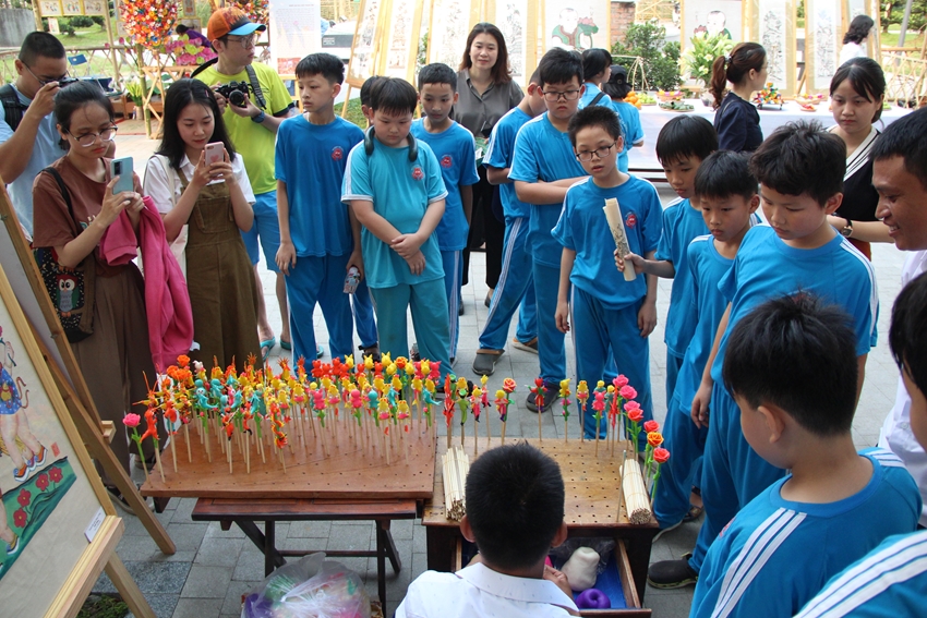 Các em học sinh thích thú với gian trưng bày tò hè bằng bột