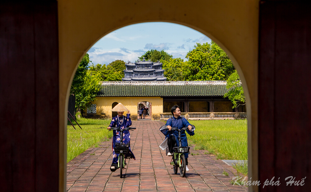 Du khách thích thú tham quan Hoàng cung Huế bằng xe đạp điện trợ lực GCOO