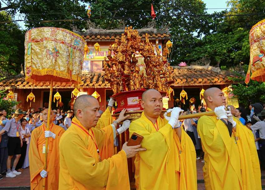 Nghi lễ tắm, rước Phật bắt đầu tại Quốc tự Diệu Đế với sự tham gia của đông đảo tăng ni, Phật tử