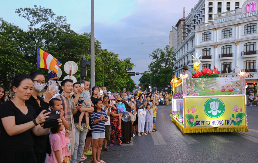 Sau khi thực hiện xong nghi lễ tắm Phật, đoàn rước Phật di chuyển bằng đoàn xe hoa được trang trí đẹp mắt, xuất phát từ Quốc tự Diệu Đế di chuyển qua nhiều tuyến đường, tiến về Tổ đình Từ Đàm.