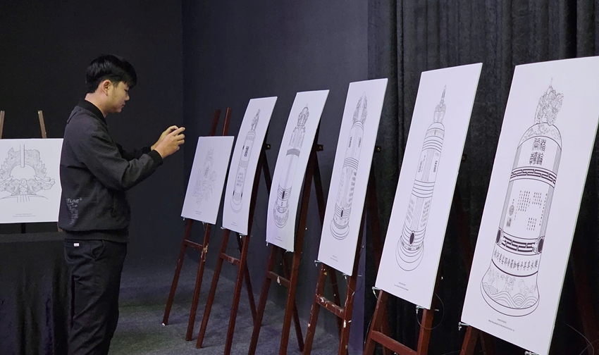 Họa tiết hoa văn trên chuông được in và trưng bày bên lề hội thảo