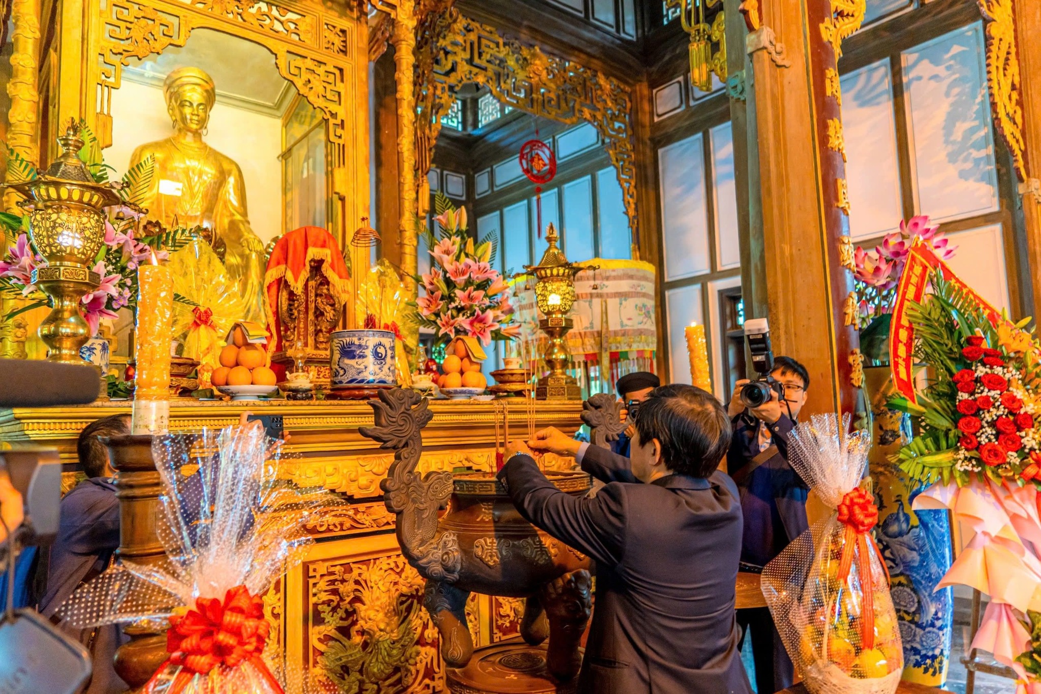 Trong phần nghi lễ, các đại biểu tham dự cùng nhân dân đã thành tâm dâng hương, tưởng nhớ Đức vua – Phật hoàng Trần Nhân Tông và Công chúa Huyền Trân. Phật hoàng Trần Nhân Tông, bậc minh quân kiệt xuất, không chỉ lãnh đạo Đại Việt đánh bại quân Nguyên Mông mà còn chọn con đường tu hành, khai sáng Thiền phái Trúc Lâm, góp phần hun đúc tinh thần dân tộc. Công chúa Huyền Trân, người đã kết duyên cùng vua Chế Mân của Chiêm Thành, giúp Đại Việt tiếp nhận hai châu Ô, Lý, đặt nền móng cho sự hình thành và phát triển của vùng đất Thuận Hóa – Phú Xuân – Huế.