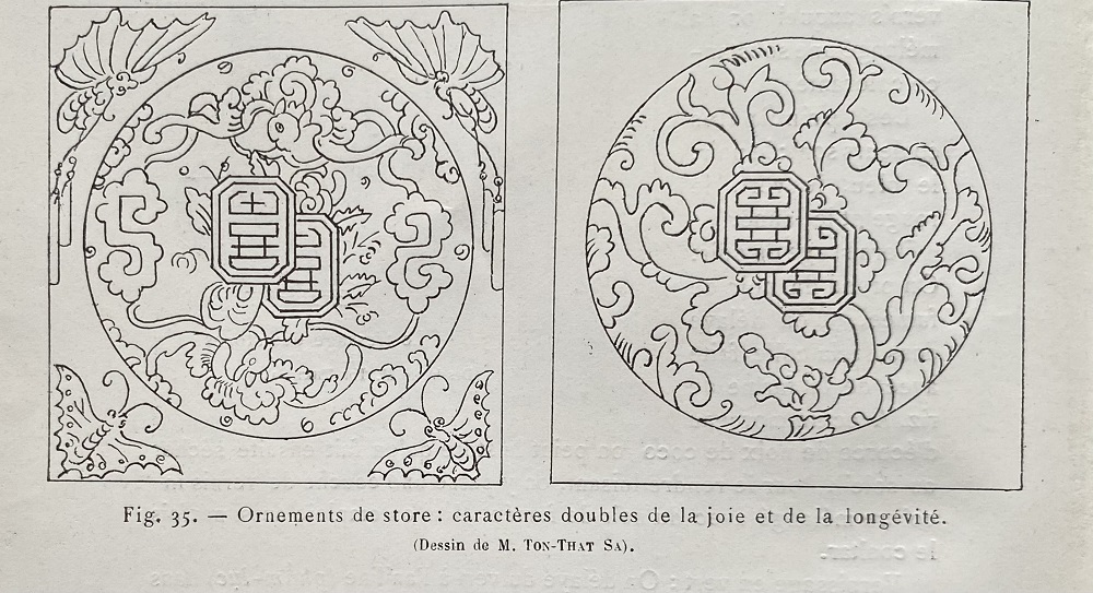 Họa tiết trang trí mành. Chữ Hỷ và chữ Thọ. Hình vẽ của Tôn Thất Sa