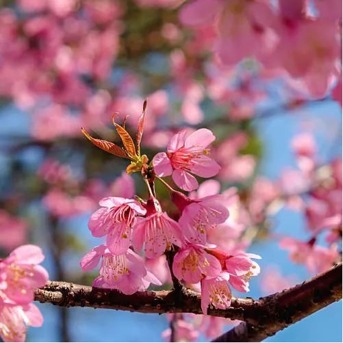 Mai anh đào là loại hoa đặc trưng cho miền Bắc mỗi độ Tết đến. Hoa có màu hồng quyến rũ, cánh dày, từ 5-24 cánh, đường kính nhỏ chỉ 3-4cm. Với đặc tính ưa lạnh, mai anh đào cũng được trồng nhiều ở khu vực Đà Lạt, Lâm Đồng để thu hút khách du lịch.