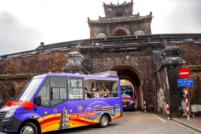 In the final days of the lunar year of the Quy Mao, the Hue Branch of Hanoi Passenger Transport Joint Stock Company officially commenced operating a sightseeing tour service for tourists using open-top single-decker buses within the province. This service is aimed at foreign and domestic tourists who wish to explore the famous landmarks of Hue City.