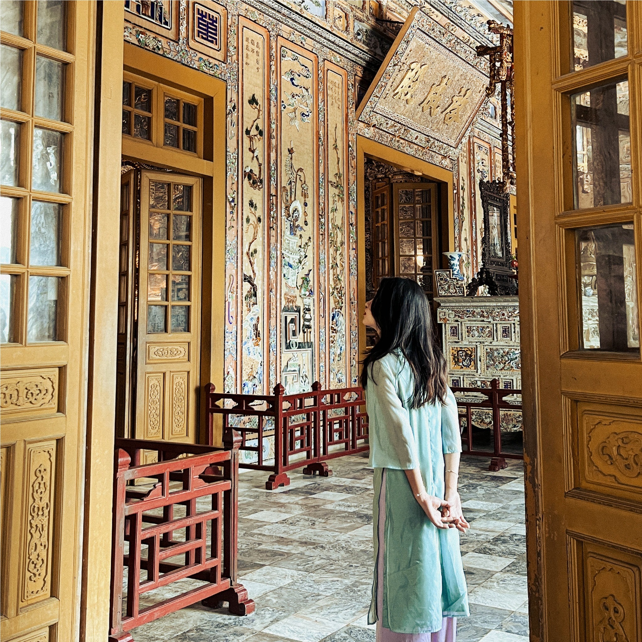 And if possible, I highly recommend renting traditional costumes for some authentic photos. Costume rental spot: BohoShop (21 Điện Biên Phủ) - only 100,000 VND for the full set with accessories. The owner even helped me style my hair.