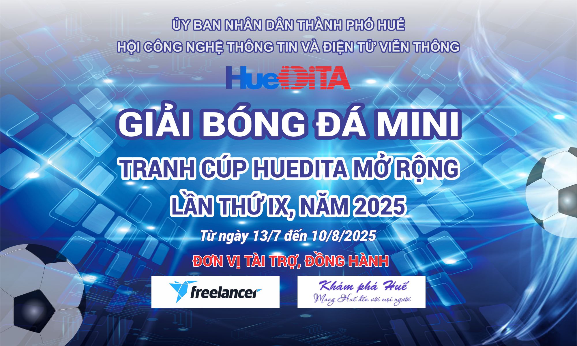 Giải bóng đá mini tranh cúp HueDITA mở rộng lần thứ IX – năm 2025 sẽ diễn ra từ ngày 13/7 đến ngày 10/8/2025.