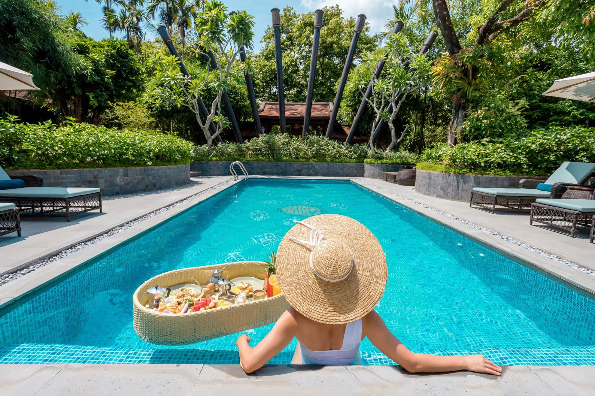 Built according to feng shui principles, the outdoor pool is the heart of Ancient Hue Garden Houses. Guests are welcome to host outdoor dining or a lively pool party. Sandstone is used to pave the pool floor, ensuring safety, and being anti-slip for the elderly and children.