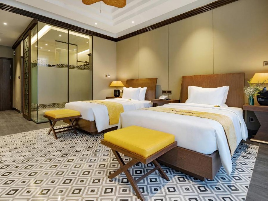 This is an outstanding room type with the difference in area compared to the two types of rooms mentioned above. At Senna Hue Hotel, this room type has an area of up to 67m2 with a capacity for up to 4 guests. Designed with 2 double beds, suitable for a family or group of friends to travel together. When choosing a premier room to stay at Senna Hue, visitors will be able to enjoy the panoramic view of the city with bustle in the morning and tranquility at night.