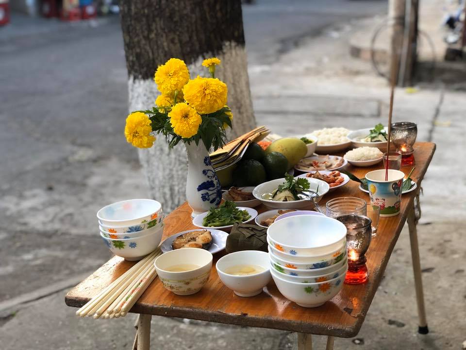 In the past, people in Hue used to offer year-end offerings late, usually in the days leading up to Tet (Lunar New Year), but nowadays, offerings are made earlier, with some households starting as early as the 20th of the twelfth lunar month. People in Hue are very meticulous in their offerings. In addition to the ancestral altar where offerings are made to ancestors, offerings to the land god are divided into two tables, each with full ceremonial items and a meal. In the yard, garden, and even along the roadside, there are also meals to express gratitude to the deceased.