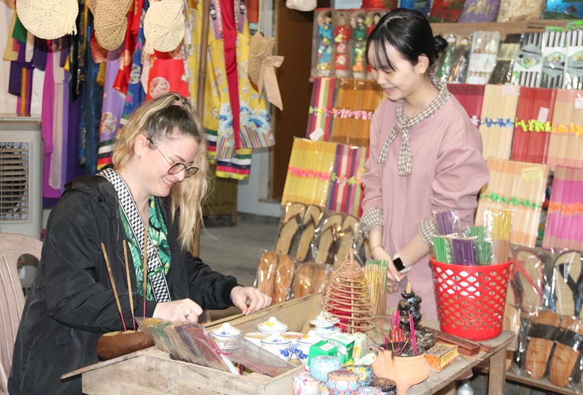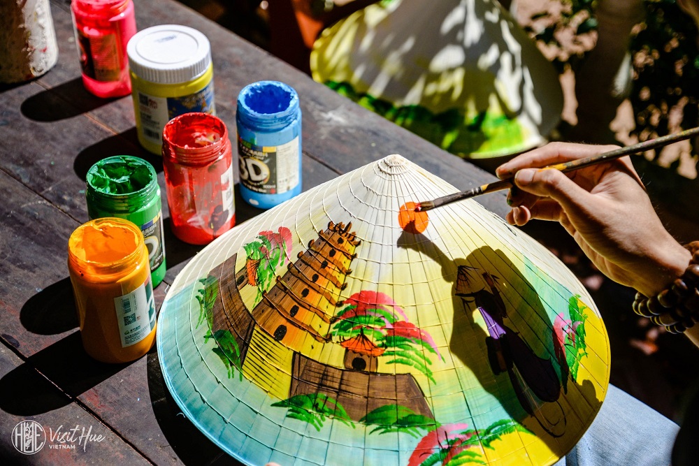 Tourism thrives in Hue, conical hats have become souvenirs with Hue's unique culture that are popular with tourists. Many tourists have come to hat villages to witness and participate in the stages of hat making. Many people were really surprised and excited when the hat maker saved their photo and name on the poem hat to take home as a souvenir.