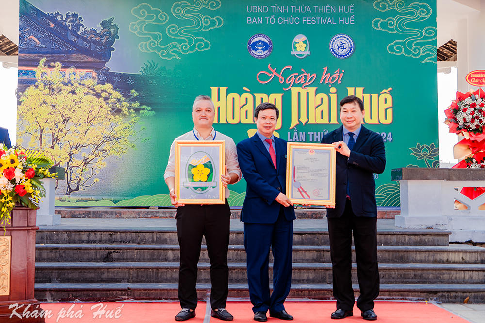 The leadership of the Intellectual Property Office awarded the Geographic Indication Certificate for "Hue" to the Yellow Apricot product.